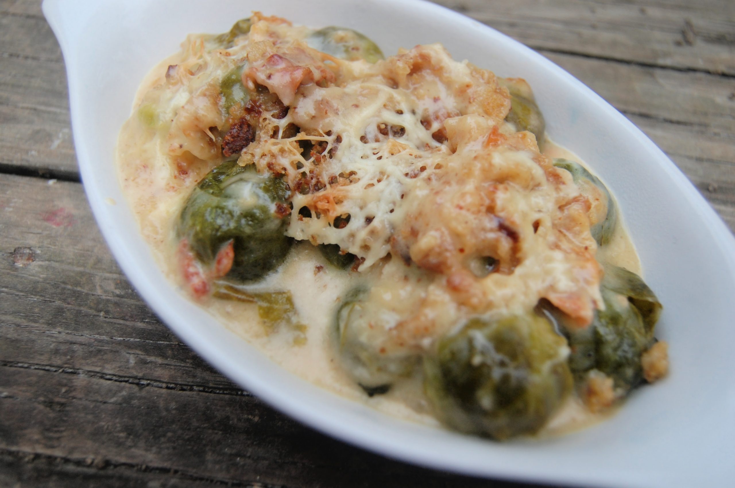 Many years ago, I was at a steakhouse. They offered an interesting new side dish: Brussels sprouts baked with bacon and cheese. I like Brussels sprouts, and bacon and cheese make everything better, right? I ordered it.